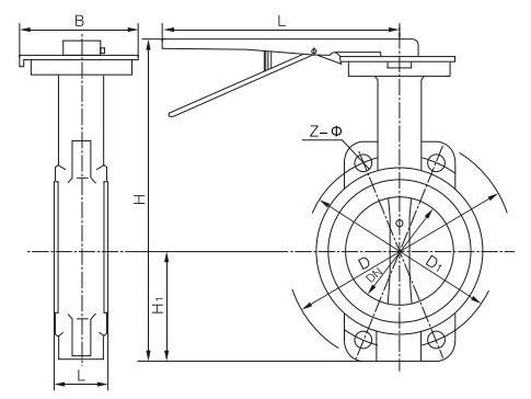 D71F四氟密封對夾蝶閥主要外形尺寸