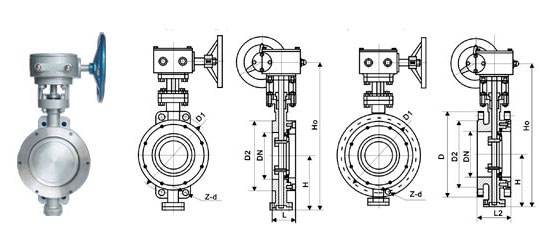 D373H三偏心多層次硬密封蝶閥外形連接尺寸:單位:mm)